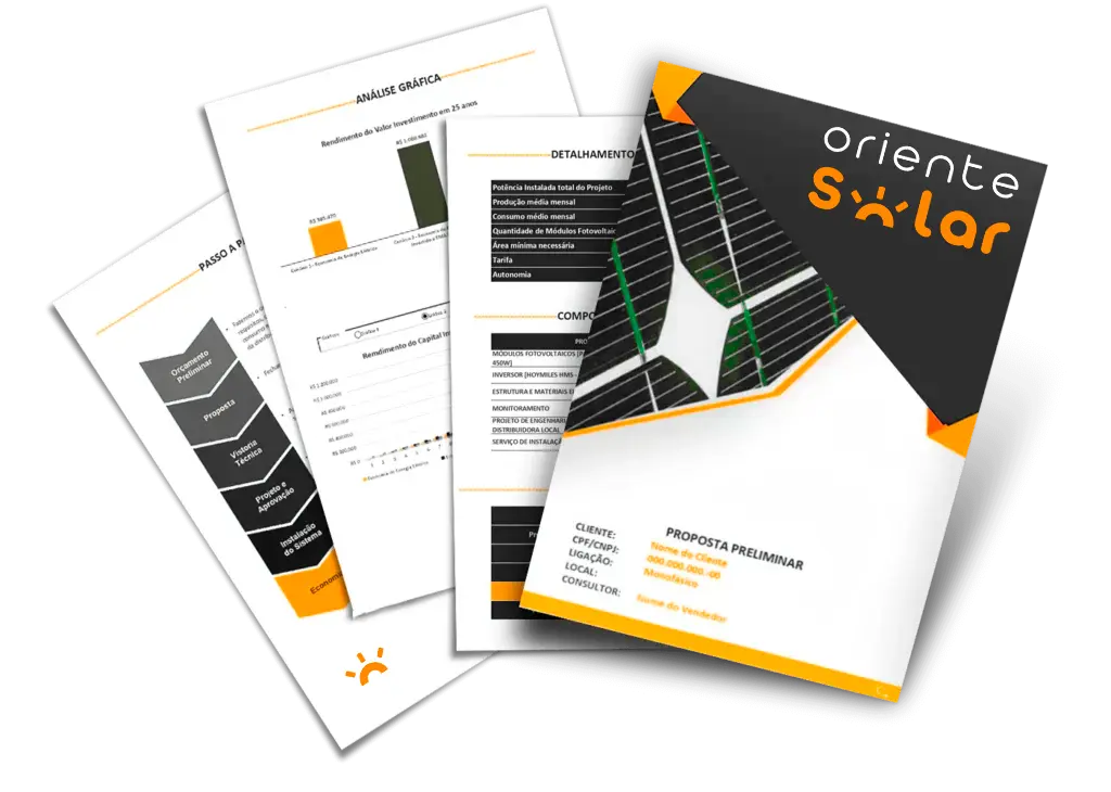 Pegue sua proposta completa contendo toda a economia que será gerada no seu sistema, os materiais que serão utilizados e o investimento necessário 100% personalizado para o seu caso.